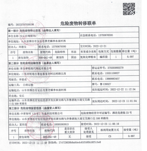 危險(xiǎn)廢物轉(zhuǎn)移聯(lián)單2